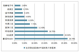 2017年第4季度中國主流移動閱讀APP活躍用戶滲透率情況