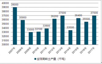 2007-2017年全球高嶺土產(chǎn)量分析