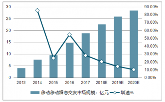 2013-2020中國移動婚戀交友市場規模及增長走勢