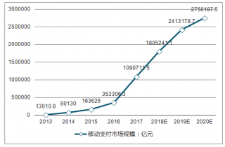 2013-2020中國(guó)移動(dòng)支付市場(chǎng)規(guī)模及增長(zhǎng)走勢(shì)