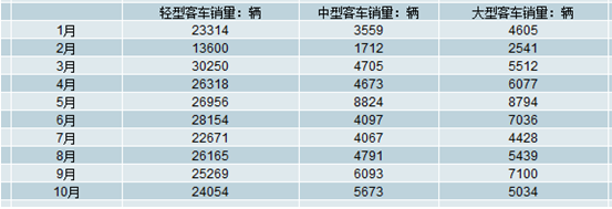 2018年10月大型客車(chē)銷(xiāo)量為5034輛,同比下降46.41%。2018年1-10月大型客車(chē)銷(xiāo)量為56061輛,同比下降9.15%。