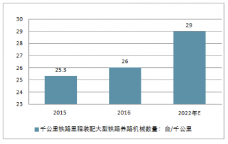 2015-2022年千公里鐵路里程裝配大型鐵路養路機械數量及預測(單位:臺/千公里)