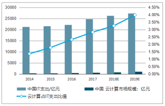 中國云計算市場規(guī)模及其占整體 IT 支出比例