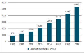 2010-2017年我國(guó)LED應(yīng)用產(chǎn)業(yè)規(guī)模走勢(shì)圖