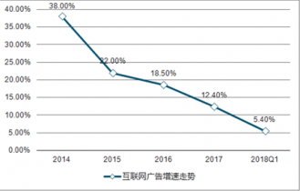 2014 -2018年互聯(lián)網(wǎng)廣告增速走勢(shì)