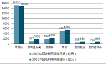 “十三五”期間再生資源重點領域回收利用規模目標(億元)