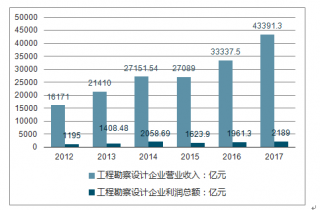 2012-2017年中國(guó)工程勘察設(shè)計(jì)企業(yè)營(yíng)業(yè)收入及利潤(rùn)總額走勢(shì)