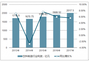 2017年規(guī)模以上飲料制造業(yè)實(shí)現(xiàn)利潤(rùn)總額2017.5億元,同比增長(zhǎng)5.71%。
