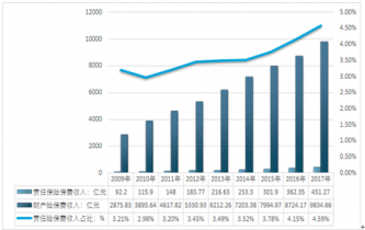 2009-2017年中國責(zé)任保險(xiǎn)行業(yè)保費(fèi)收入在財(cái)產(chǎn)保險(xiǎn)中比重情況
