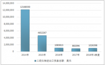2014-2018年1季度二硫化碳進出口貿易總額走勢圖(單位:美元)