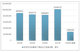 2016年我國初級形狀的聚異丁烯進出口貿易總額82846822美元,2017年進出口貿易總額101482727美元;2019年1季度進出口貿易總額27866198美元。