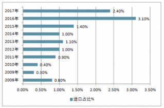 我國豬肉進(jìn)口主要以冷凍鮮豬肉形式為主。2017年冷凍鮮豬肉進(jìn)口量占國內(nèi)總產(chǎn)量2.4%。近十年以來進(jìn)口豬肉占比除個(gè)別年份下降,總體是增加趨勢。3月23日商務(wù)部消息,中國對美進(jìn)口豬肉及制品加征25%關(guān)稅。由于關(guān)稅稅率增加和中美價(jià)差縮小,后期對美進(jìn)口豬肉量大概率減少。目前國內(nèi)豬價(jià)低迷,豬肉進(jìn)口量繼續(xù)增加可能性很小。