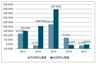 2013-2017年傳統(tǒng)超市開關(guān)店增速