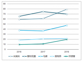 2016-2018全球前10輪胎品牌價值價值趨勢-TOP5