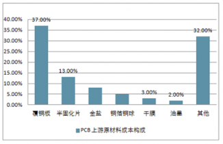 PCB 生產(chǎn)的上游原材料主要包括覆銅板(CCL)、銅箔、環(huán)氧樹脂、銅球、半固化片、金鹽、油墨、干膜及其他化工材料,柔性電路板的主要原料還包括覆蓋膜、電磁膜等。 覆銅板成本占據(jù) PCB 生產(chǎn)成本比重最高約 30~40%; 半固化片即粘結片占 PCB 總生產(chǎn)成本的 13%; 金鹽占 PCB 總生產(chǎn)成本的 8%; 銅箔銅球占 PCB 總生產(chǎn)成本的 5%; 干膜占 PCB 總生產(chǎn)成本的 3%; 油墨占 PCB總生產(chǎn)成本的 2%; 其他占比 32%。 原材料的成本占據(jù) PCB 成產(chǎn)成本的 50%以上。