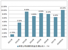 珠寶公司經(jīng)營性現(xiàn)金流/營業(yè)收入(%)