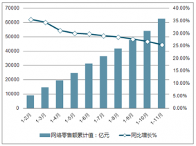 20181-11月份當(dāng)月累計網(wǎng)上零售同比增長