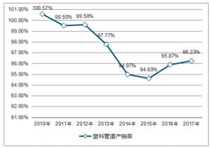 2010-2017年中國塑料管道產(chǎn)銷率走勢(shì)