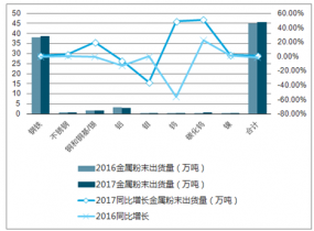 2017年北美金屬粉末出貨量及增長走勢