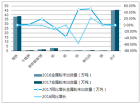 2017年北美金屬粉末出貨量及增長(zhǎng)走勢(shì)