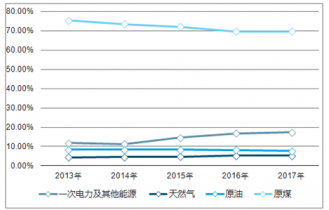 2013-2017年中國(guó)各能源產(chǎn)量占總產(chǎn)量比重