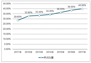 2011-2017年中國觸控屏出貨量占全球情況