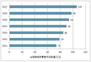 2011-2017年我國咽喉用藥零售市場規模走勢