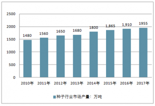 2010-2017年我國(guó)種子行業(yè)市場(chǎng)產(chǎn)量走勢(shì)