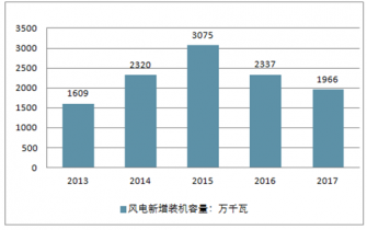 2013-2017年中國風(fēng)電市場新增和累計裝機(jī)容量(單位:萬千瓦)