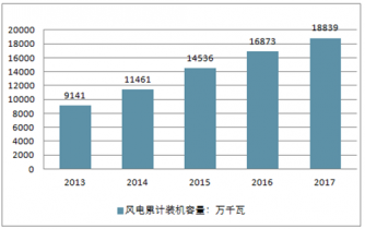 2013-2017年中國風(fēng)電市場累計裝機(jī)容量(單位:萬千瓦)