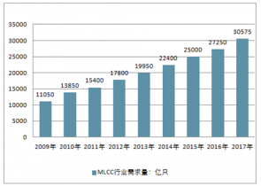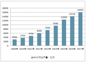 2009-2017年中國MLCC市場產(chǎn)量情況