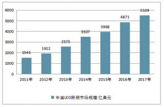2011-2017年中國(guó)LED市場(chǎng)規(guī)模走勢(shì)