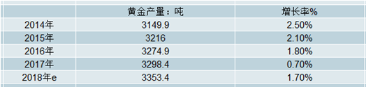 2014-2018年全球黃金產量及預測
