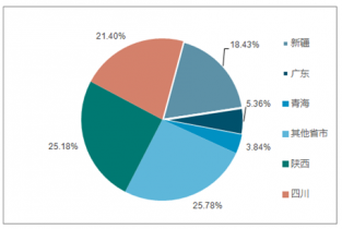 從天然氣生產(chǎn)地區(qū)來(lái)看,陜西、四川、新疆三大西部省份產(chǎn)量最高,這是西氣東輸?shù)淖罨镜谋尘埃黄渌》蒹w量較三大省份小得多。2017年,三大省份的天然氣產(chǎn)量占全國(guó)天然氣總產(chǎn)量的72.82%。