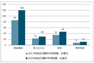 汽車電子、5G通訊、工業(yè)市場(chǎng)成長(zhǎng)性最大。2017-2020年,手機(jī)創(chuàng)新以及5G普及,汽車電子化、工業(yè)4.0、云計(jì)算等將持續(xù)推升對(duì)被動(dòng)元件的需求。其中網(wǎng)絡(luò)通信增長(zhǎng)39%,達(dá)120億美元;車用增長(zhǎng)31%,達(dá)46億美元;特殊用途將增長(zhǎng)35%,達(dá)11億美元;電力與工控域增長(zhǎng)24%,達(dá)到29億美元。