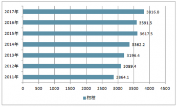 2017年我國柑桔產量為3816.8萬噸,產量同比增長6.27%