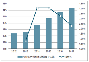 2017年,中國(guó)特種水產(chǎn)飼料行業(yè)市場(chǎng)規(guī)模為146.69億元,市場(chǎng)規(guī)模增同比增長(zhǎng)2.3%。
