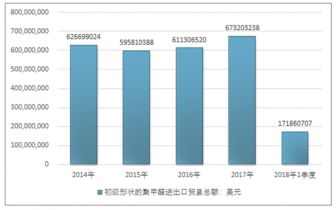 2016年我國初級(jí)形狀的聚甲醛進(jìn)出口貿(mào)易總額611306520美元,2017年進(jìn)出口貿(mào)易總額673203238美元;2018年1季度進(jìn)出口貿(mào)易總額171860707美元。