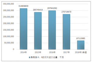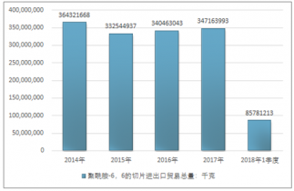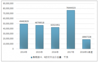 2016年我國聚酰胺-6,6的切片進出口貿易總量340463043千克,2017年進出口貿易總量347163993千克;2018年1季度進出口貿易總量85781213千克。