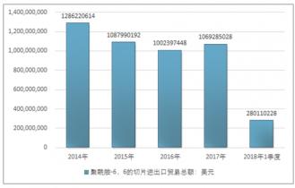 2016年我國聚酰胺-6,6的切片進出口貿易總額1002397448美元,2017年進出口貿易總額1069285028美元;2018年1季度進出口貿易總額280110228美元。