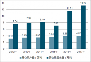 2012-2017年中國開心果產(chǎn)銷量走勢