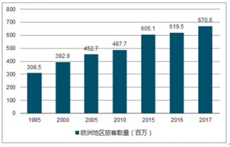 1995-2017年歐洲地區(qū)游客數(shù)量情況