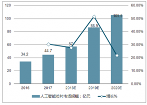 2016-2020年全球人工智能芯片市場規(guī)模及增長率走勢