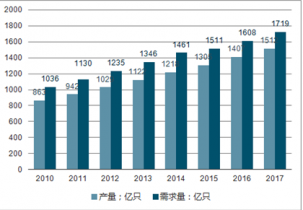2010-2017年中國鋁電解電容器供需及同比增長走勢