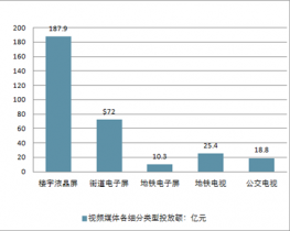 視頻媒體為戶外廣告的重點媒體投放趨勢,其中樓宇液晶穩(wěn)居首位。2017年上半年,視頻媒體的投放額同比增長20%,其中樓宇液晶穩(wěn)居首位,2017年上半年投放額為187.9億元,地鐵電子屏、地鐵電視、公交電視2017年上半年投放額分別為10.3億元、25.4億元、18.8億元。