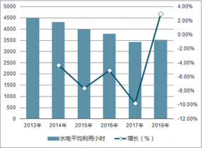 2013-2018年中國(guó)水電平均利用小時(shí)及增長(zhǎng)情況走勢(shì)