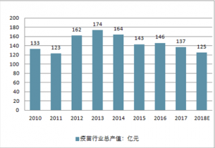 按批簽發口徑測算,我國疫苗產值在2013年達到頂峰,為174億元,此后呈現逐年下滑態勢。2017年,中國疫苗產業已降至137億元,同比下滑6.2%;今年在長生生物疫苗事件影響下,產值預計進一步縮水至125億元。