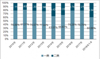 2010-2018年前三季度中國一類、二類疫苗批簽發量占比