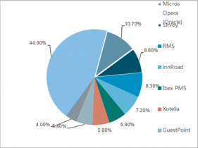 截至2019年7月29日,Micros、Sirvoy、RMS、innRoad、iBex、Xotelia、GuestPoint和RoomKey八家公司占據(jù)了全球酒店P(guān)MS56%的市場(chǎng)份額,CR8=56%,全球酒店P(guān)MS行業(yè)競(jìng)爭(zhēng)格局還比較分散。