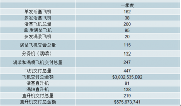 2019年第.一季度通用飛機成交量達到447架,直升機交付總量219架。同比2017年第.一季度的435架與187架有所增加。